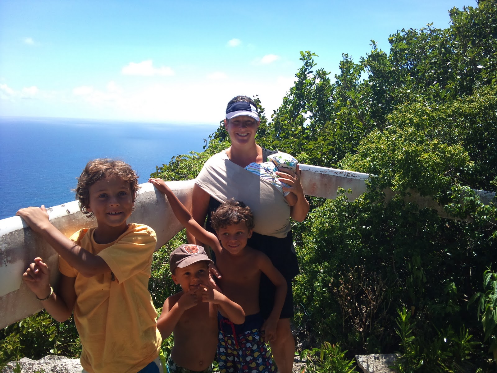 We are living in a two bedroom apartment in a villa in the town of Gosier, just outside of Pointe-a-Pitre. This is located at a dead-end street (good for ball playing) on top of the cliffs of Gosier with an epic view overlooking the ocean, the seaside communities across the bay and the mountains of Basse-Terre. On a clear day (which is almost every day) our vista includes the outer islands of Les Saintes and even Dominica in the background. Every morning as we dig into our cereal and fresh mangoes on the outside terrace we can watch the colourful sailboats bobbing in the water, and hear the waves crashing into the rocks. I look forward to drinking my coffee out here as I guide the kids through their morning school work.